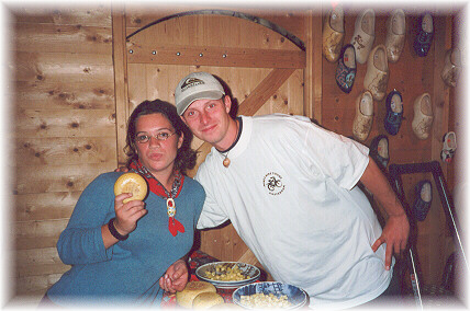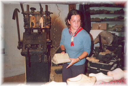 Tour guide at the shoe and cheese factory, explaining how the wooden shoes are made. |